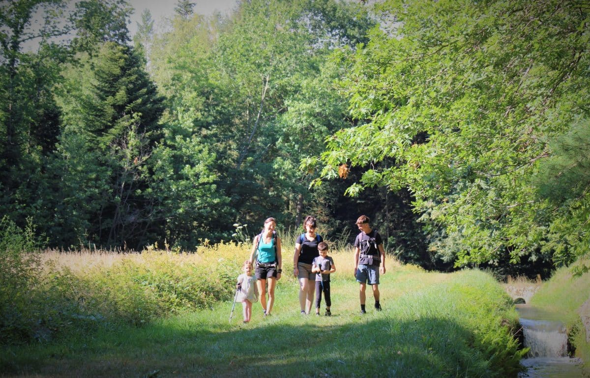 Au milieu de la forêt, nous déambulons au gré de nos envies. Les enfants adorent ce moment de partage où l’on se laisse porter par la nature : les oiseaux chantent, le vent soulève les feuilles des arbres, l’eau clapote dans le ruisseau. Nous guettons les alentours « stop » : le feuillage bouge et tout à coup un chevreuil détale devant nous et s’enfonce dans la forêt !